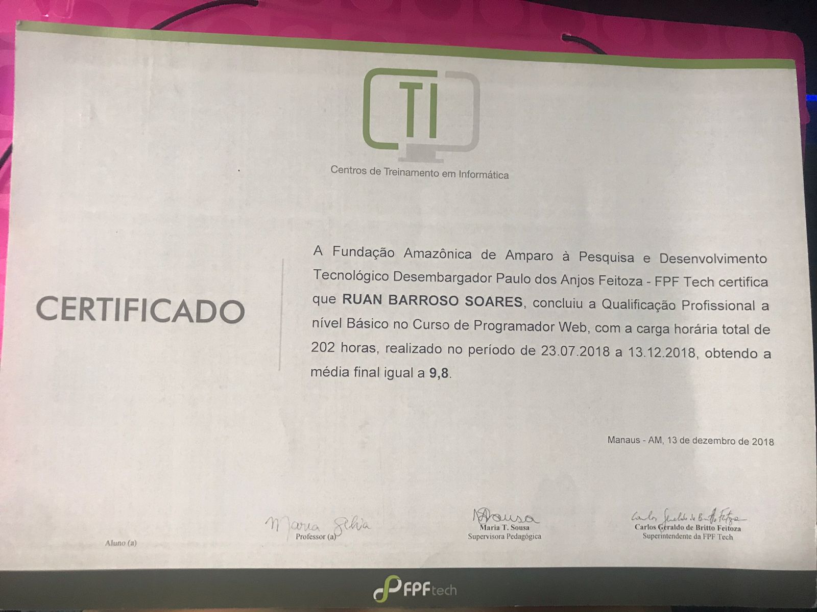 Técnico em Informática, 2016-2018