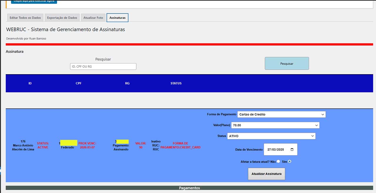 Neste projeto já iniciado em Wordpress, Em PHP fiz a atualização do gerenciamento de usuários do banco de dados do mesmo, com a opção de cadastramento, exclusão, atualização e remoção. Também fiz algumas configurações do próprio Wordpress, utilizei ferramentas de personalização como Elementor, JQuery, integração de API, Hooks do Wordpress e Hooks de plugins, e a opção de gerar uma planinha ou arquivo CSV dos usuários cadastrados. Foi minha primeira vez utilizando CMS, Wordpress é bem organizado e também fiz tratativas de respostas pela API de pagamento.