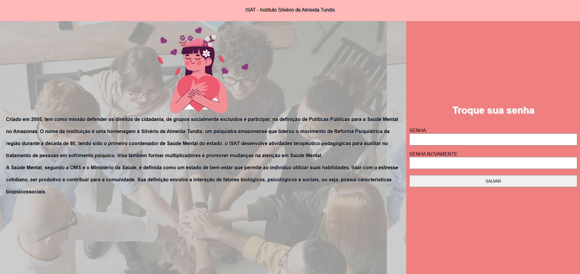 Neste projeto, usei meu máximo esforço e dedicação para deixa-lo organizado, modular, com boas práticas e pensando usuabilidade do profissional que usará. Este é um projeto para administração de usuários e dos próprios profissionais da instituição. Contando com mais de 9 tabelas no Diagrama de Entidade e Relacionamento, um controle desses dados, de acesso, de alteração deles, foi feito minunciosamente com atenção e cuidado. Todas as telas são pensadas em fácil entendimento para o profissional, e todas as ações são pensadas na facilitação do trabalho do mesmo. Mostrarei algumas páginas mais legais de explicar.