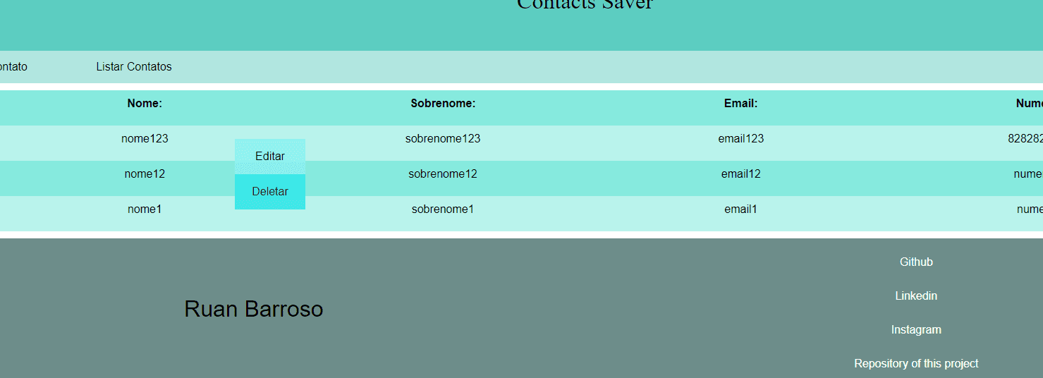 Me dei o desafio de criar um ContextMenu(menu clicado com o botão direito) em cada contato, pra treinar esse React, o conclui com sucesso. Ao clicar em cada contato aparece Deletar ou Editar.